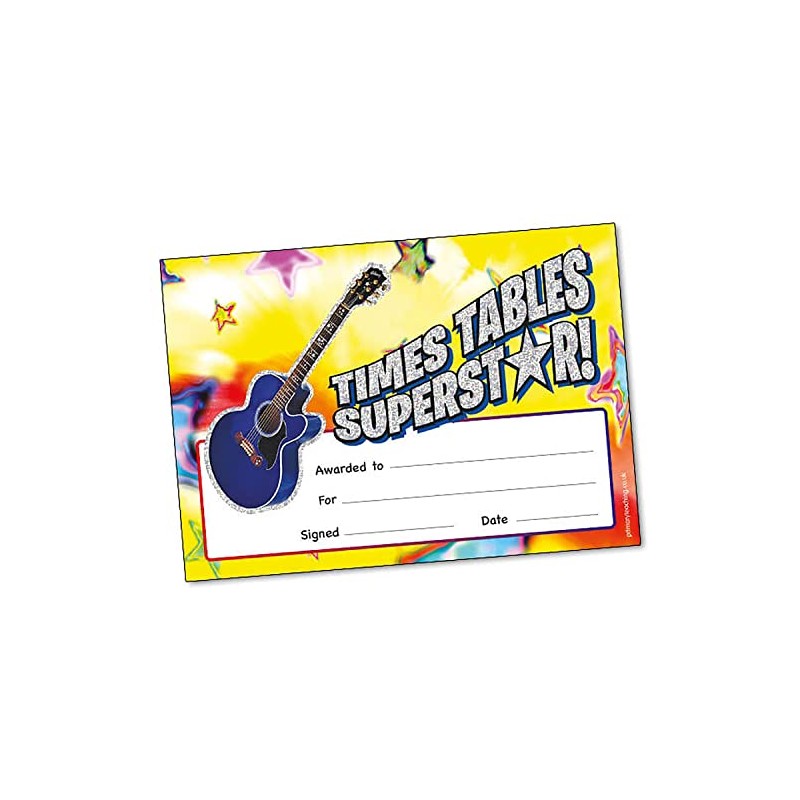40 Holographic Sparkly Times Tables Superstar Childrens Pupils Motivational Reward School Certificates A5 Primary Teaching Services