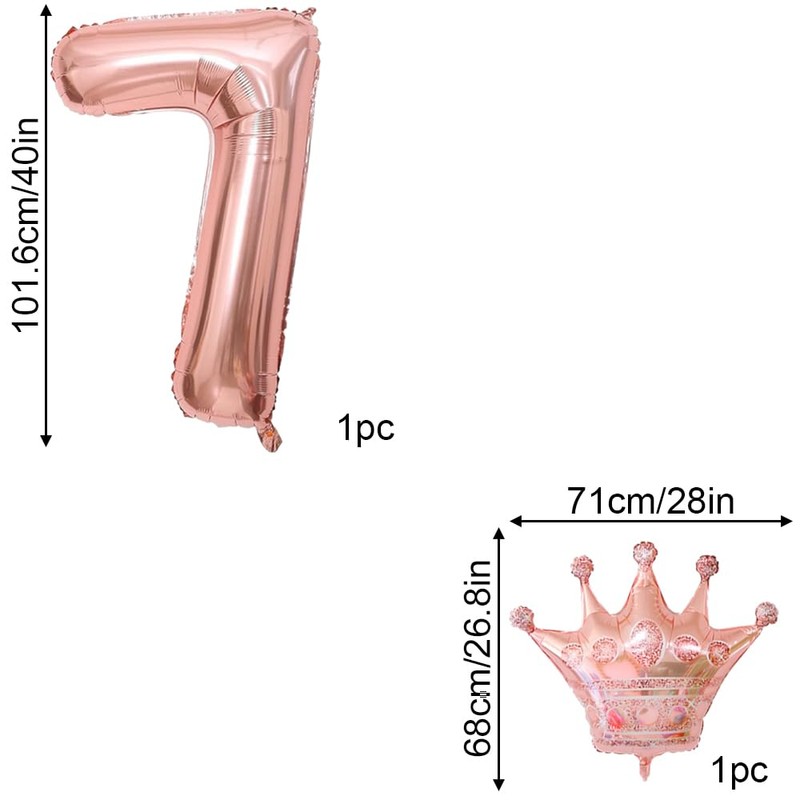 - 1 pcs 40 Inch RoseGold Number 7 balloons,1pcs RoseGold Crown,1 straw,these oversized balloons are not just a burst of vibrant colors but also come adorned with charming crowns