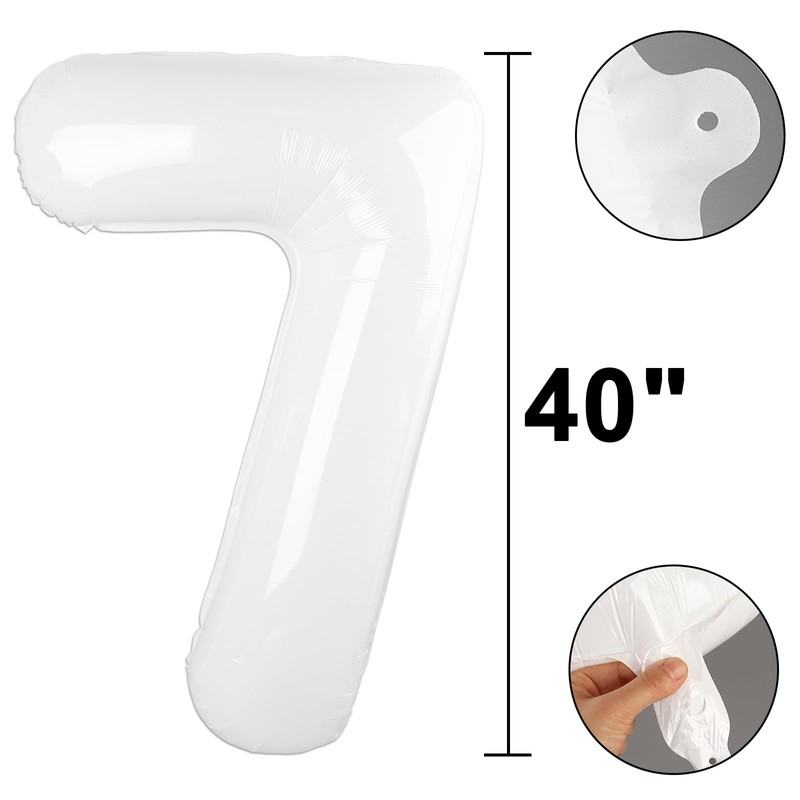 - 2.Stunning Number Balloon: This 40 inch vibrant White foil balloon is the perfect addition to any party, creating a magical backdrop for your guests to capture unforgettable memories. Whether you're celebrating a child's 7 year birthday, a teen's milestone, or even an 7 anniversary, this White number balloon will add a touch of elegance and style to your event.