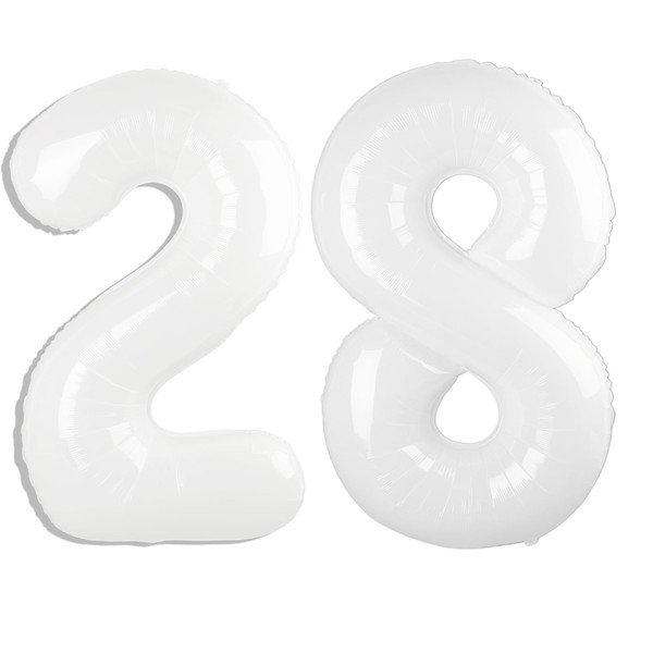 40 Inch White Number 28 Digital Balloon,Jumbo Mylar Foil Helium Balloon for 28 Balloons for Birthday Party,Wedding Anniversary Party Decorations