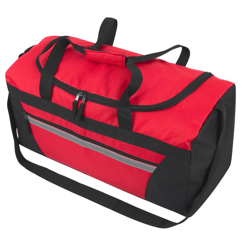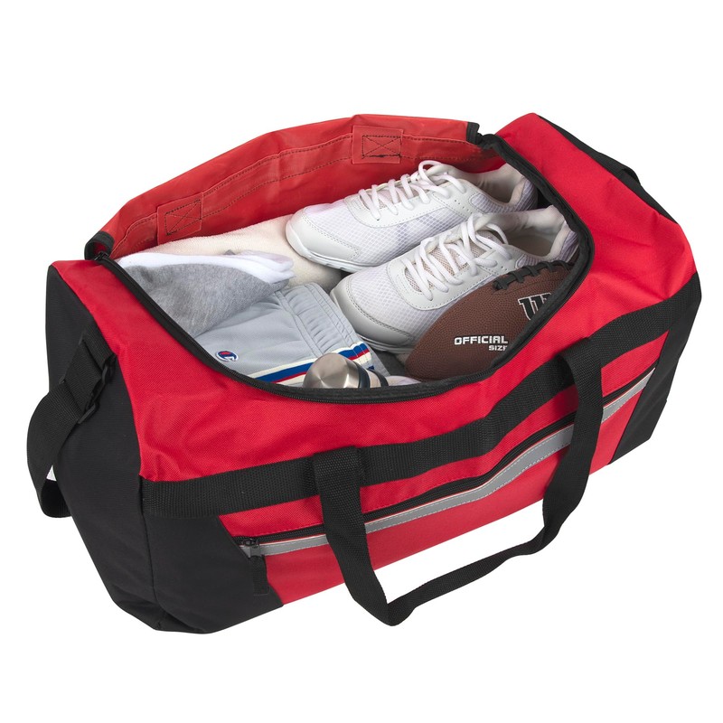 - DIMENSIONS: Red duffle bag measures 22” x 12” x 9”