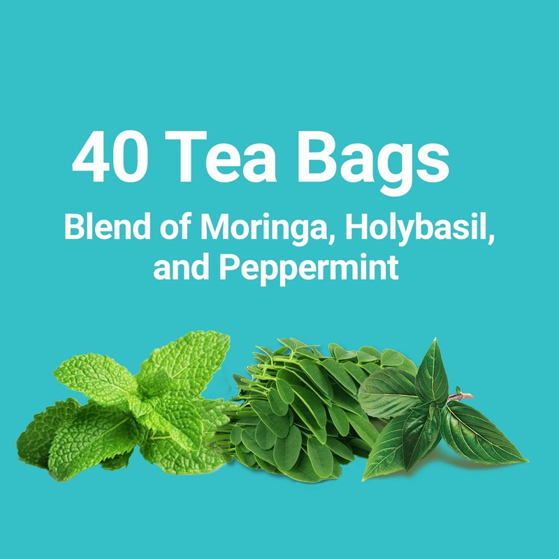 40 Moringa Tea Bags, Organic Moringa Tea Blend with Dried Moringa leaves, Peppermint and Holy Basil Tea, Te De Moringa, Natural Immune Support Tea, Caffeine Free