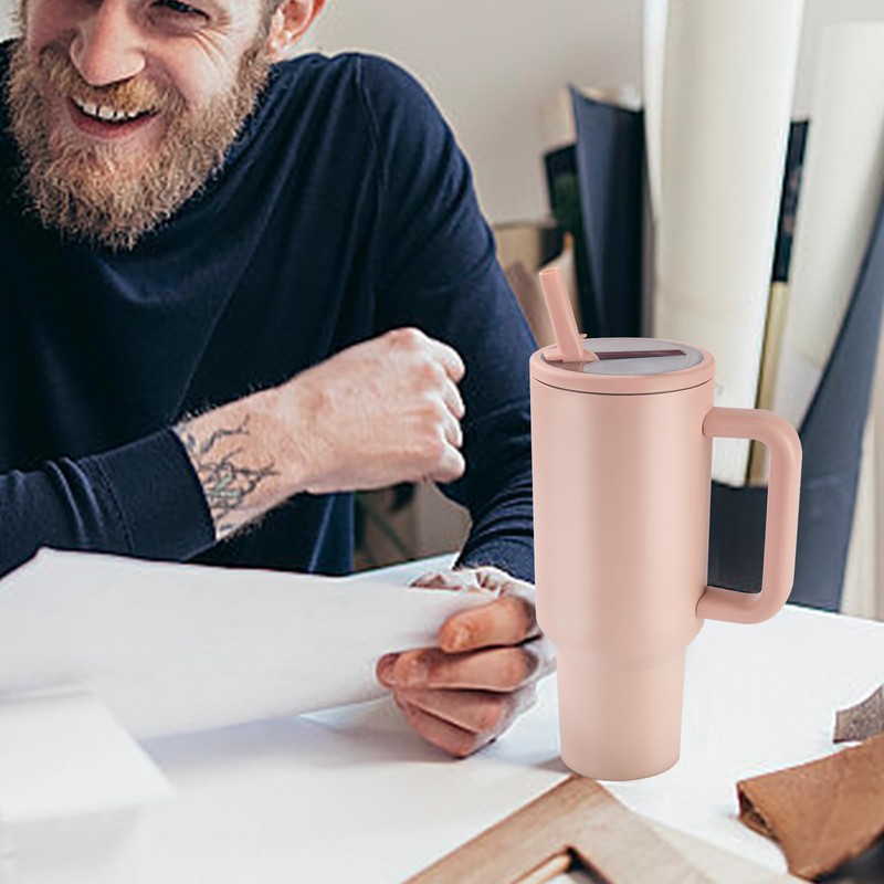 - Food-grade Material: Enjoy fresh-tasting drinks anywhere with this 40 oz insulated tumbler with lid and straw - crafted with premium BPA-free stainless steel to prevent odors and keep beverages pure, while the convenient handle and flip-straw lid make healthy hydration effortless on the go