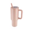 40 oz Insulated Tumbler with Handle and Flip Straw & Rubber Base Stainless Steel Water Bottle - Leak Proof Vacuum Mug Keep Drinks Hot or Cold All Day & Easy to Clean(Peach pink)