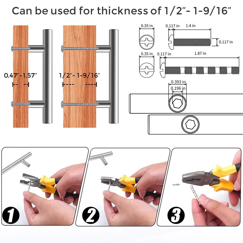 - Simple look: The Brushed Nickel cabinet handles have a wide appeal across a range of kitchen cabinet doors and drawers. The Satin Nickel handles have a clean and timeless look that works with farmhouse, vintage, traditional and transitional styles.
