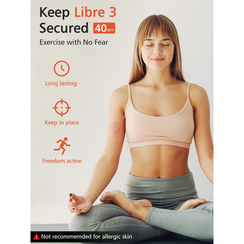 40 Packs Libre 3 Sensor Covers Waterproof, Freestyle Libre 3 Covers, Adhesive Patches Pre-Cut Back Paper Long Lasting for 10-14 Days, Not Include Freestyle Libre 3 Sensor (Skin)