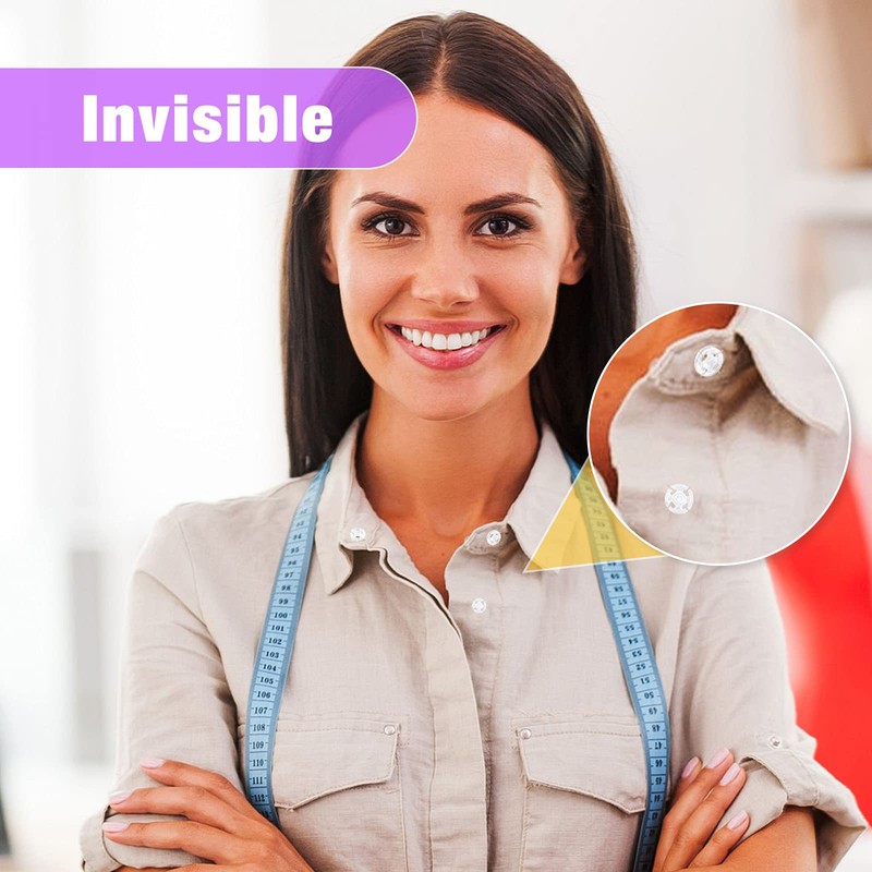 The clear plastic button can be operated by kinking the 2 parts, it has many holes on the surface, which are convenient for you to sew so that it can be firmly sewn to your clothes to prevent easy falling.