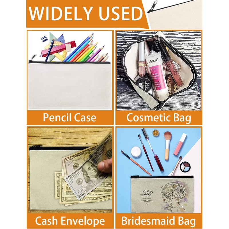 - 【Blank canvas bag】You will get 40 packs of zipper cosmetic bags, each size is 20X10CM, the quantity is enough, the size meets the needs of life and travel, you can put your favorite cosmetics inside, they can also be used as coin wallets, put in the duffel bag for weekend trips.