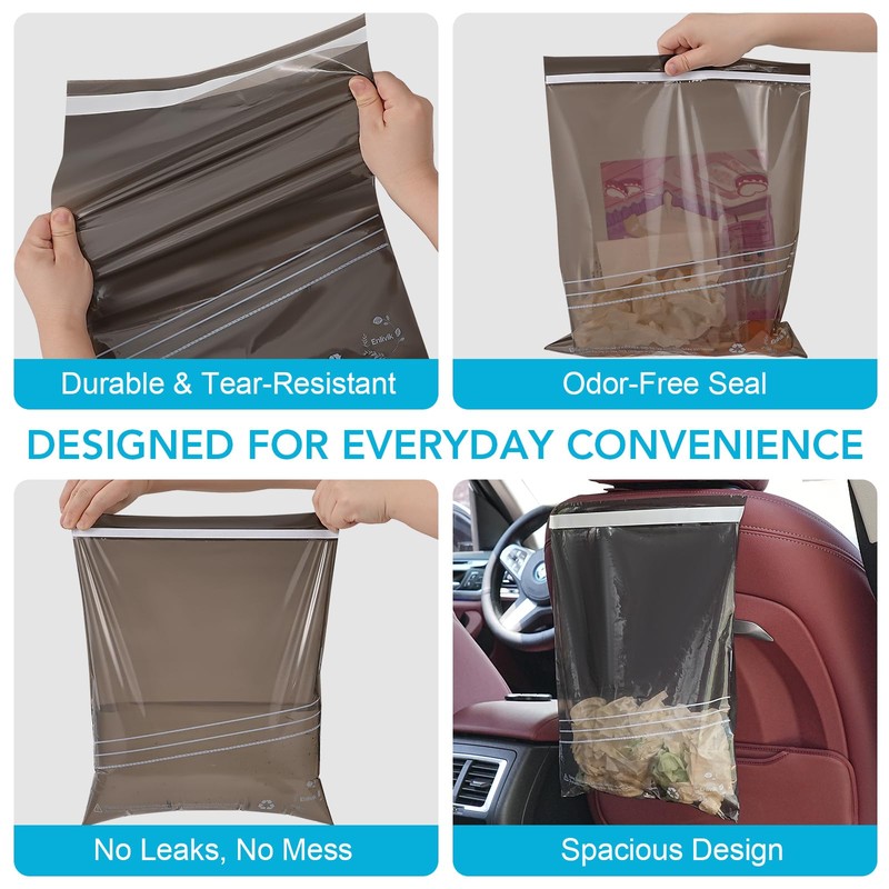 40 Pcs Disposable Car Trash Bag - Large Capacity - Car Garbage Bag Hanging from Headrest - Easy to Stick-On, Leakproof, Smellproof Car Trash Can, Puke Bags - Ideal for Travel, Camping, and Home Use