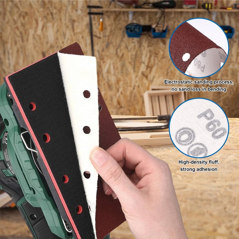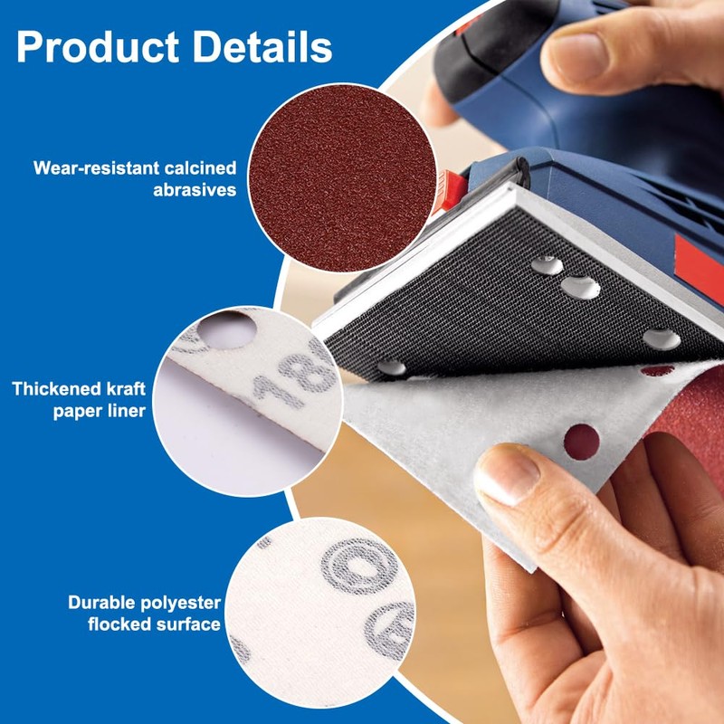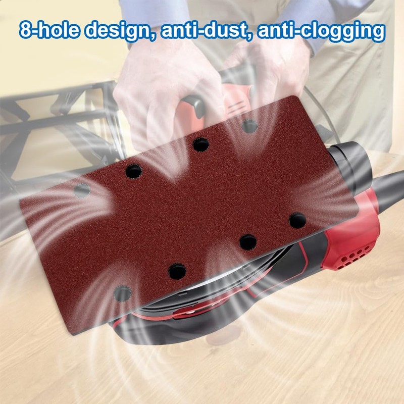 - 8-hole design: 8 holes on the orbital sander sandpaper ensure efficient dust removal, and the Velcro fastener on the orbital sander sandpaper helps you change the sandpaper quickly.