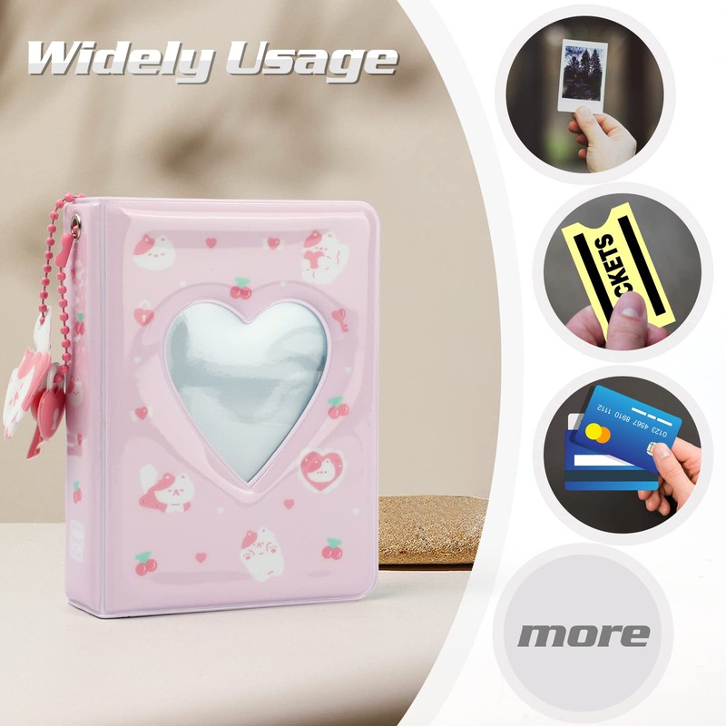 40 Pockets Photo Binder Album, 3 Inch Kpop Mini Photocard Holder Book with Lovely Pendant, Heart Hollow Cute Squirrel or Cat Pattern for Photo Picture Collection