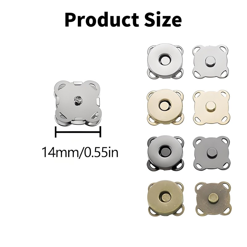 - EASY TO INSTALL: The magnetic wallet snaps are composed of two parts, just sew with needle and thread to easily fasten to the fabric, two snaps will automatically come together when they approach each other with its magnetism.