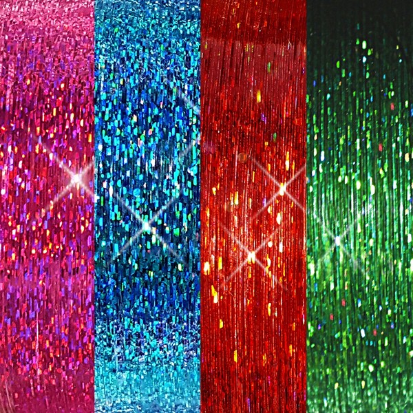 - Hair Tinsel 100 strands per color. Total 400 strands