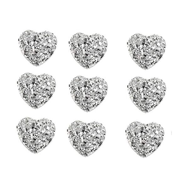 40 x Heart Shaped Silver Gems 12mm Flat Back Resin Embellishments for Crafts