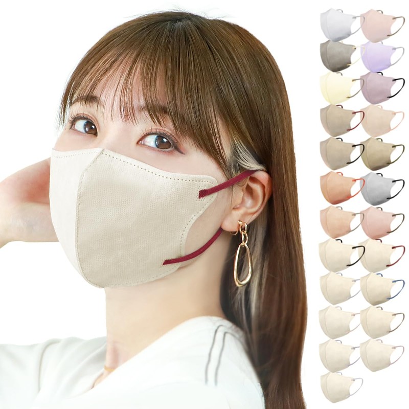 [ジュエルフラップマスク] マスク 立体 大きめ バイカラー おしゃれ 40枚×1箱 【カケンテスト済み】 花粉対策 小顔効果 3D 不織布 使い捨て 息がしやすい 蒸れない 耳が痛くならない (オールドレース×紐ボルドー)