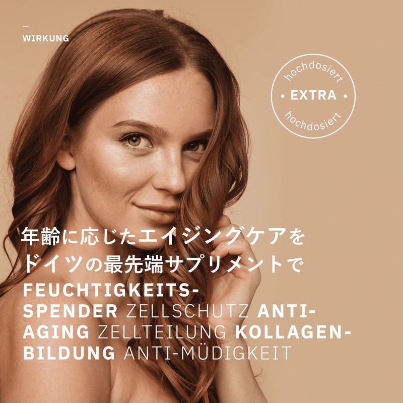 - 高濃度・高容量のヒアルロン酸とビタミン・ミネラルがお肌のサポートに