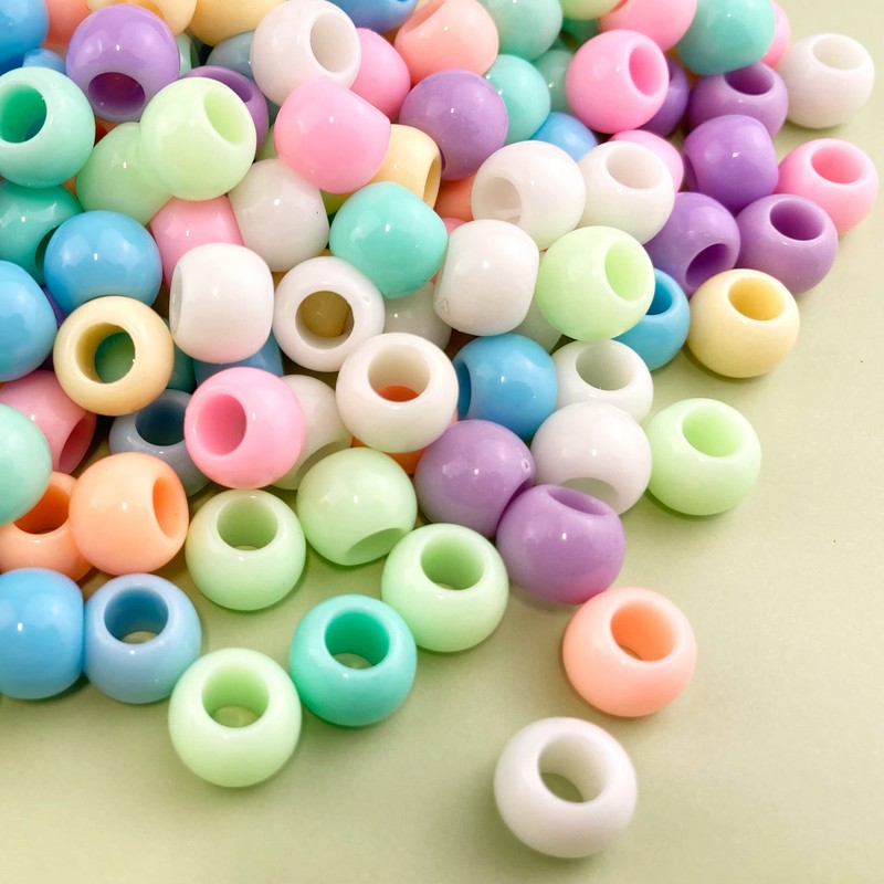 - 400 Round Pastel Multicolor Acrylic Large Hole Beads in Assorted Colors