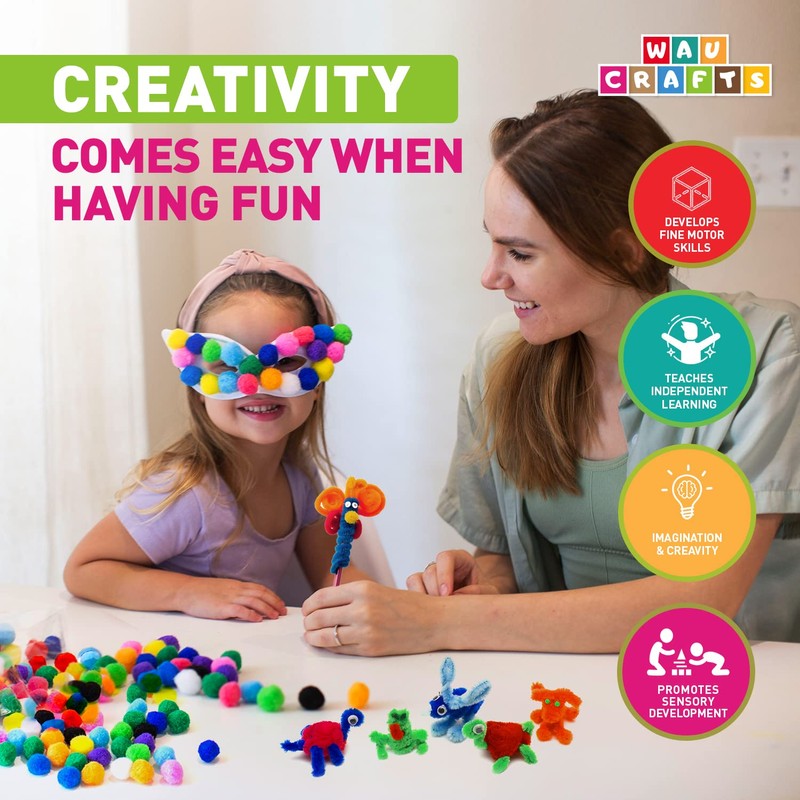 You can use these craft balls pom poms for many different art projects for your child like making fruits on paper or tails on bunnies, helping them express their creativity!