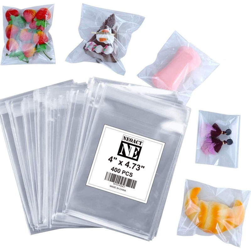 NEOACT 400 Pcs 4"x4.73" Clear Resealable Cellophane Bags Good for Bakery, Candle, Soap, Cookie Poly Bags