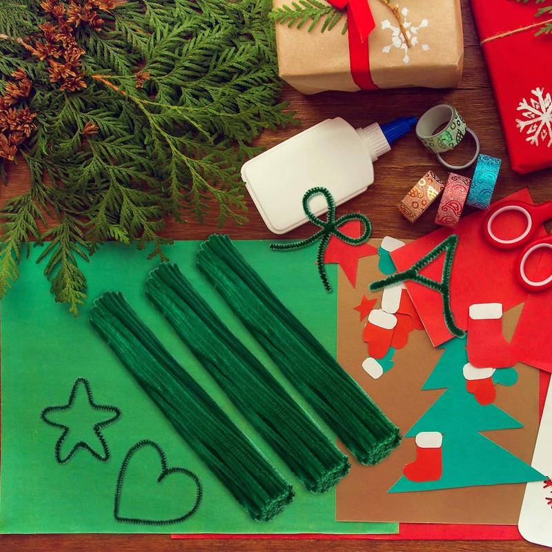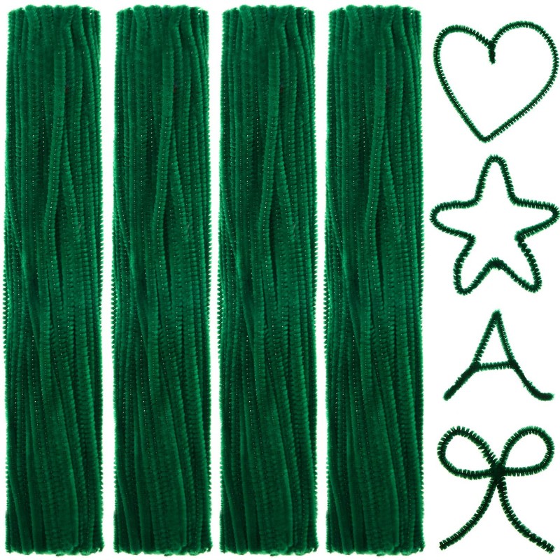 400 Pieces Pipe Cleaners Jumbo Chenille Stem Fluffy Chenille Stem for DIY Art Craft (Green)