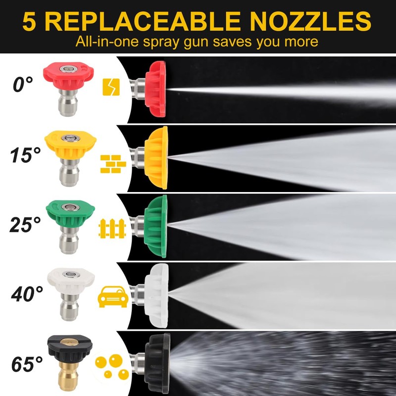 4000 PSI Pressure Washer Gun, Yuirshion 5 Nozzles Quick Connect Car Wash Gun,...