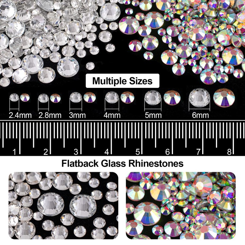 -- Each style of rhinestones or pearls involves 6 sizes (Pearls: 2-8mm; Rhinestones: 2.4-6mm). They can fulfill your DIY decoration in various scenarios, such as manicures, family DIY crafting activities (embellishing your shoes, tumblers, phone cases, bags, etc.), and shining body makeup for parties.