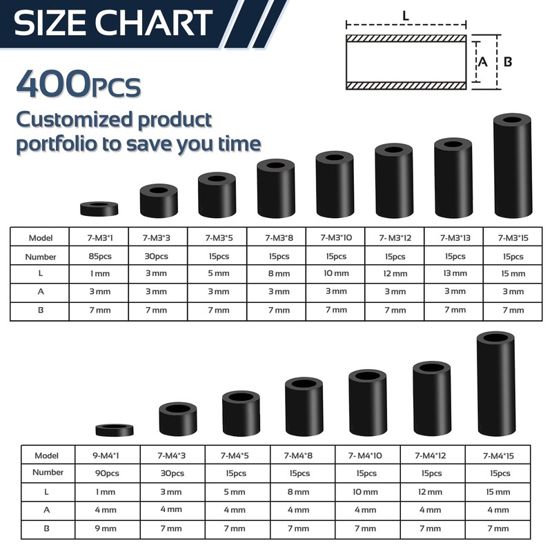- Comprehensive Kit: Includes 400 pieces, offering a complete assortment of washers and spacers. Reduces the need for multiple purchases, providing excellent value for customers.
