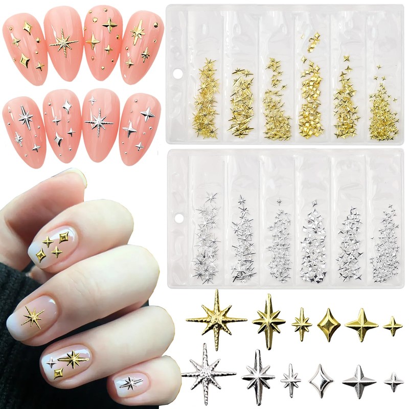 - 400pcs Gold Silver Star Nail Charms Metal Stars Nail Art Charms 3D Star Charms for Nails Design Alloy Nail Studs Star Nail Charm Nail Jewels for Nail Art Supplies Starlight Nail Decor Nail Accessories