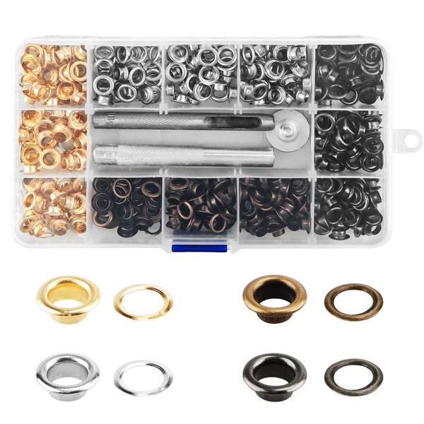 400pcs Grommet Eyelets Tool Kit 6mm with 3pcs Installation Tools,Gromette Kit for Fabric, Curtains,Anvas, Clothing, Leather, Clothing with Storage Box