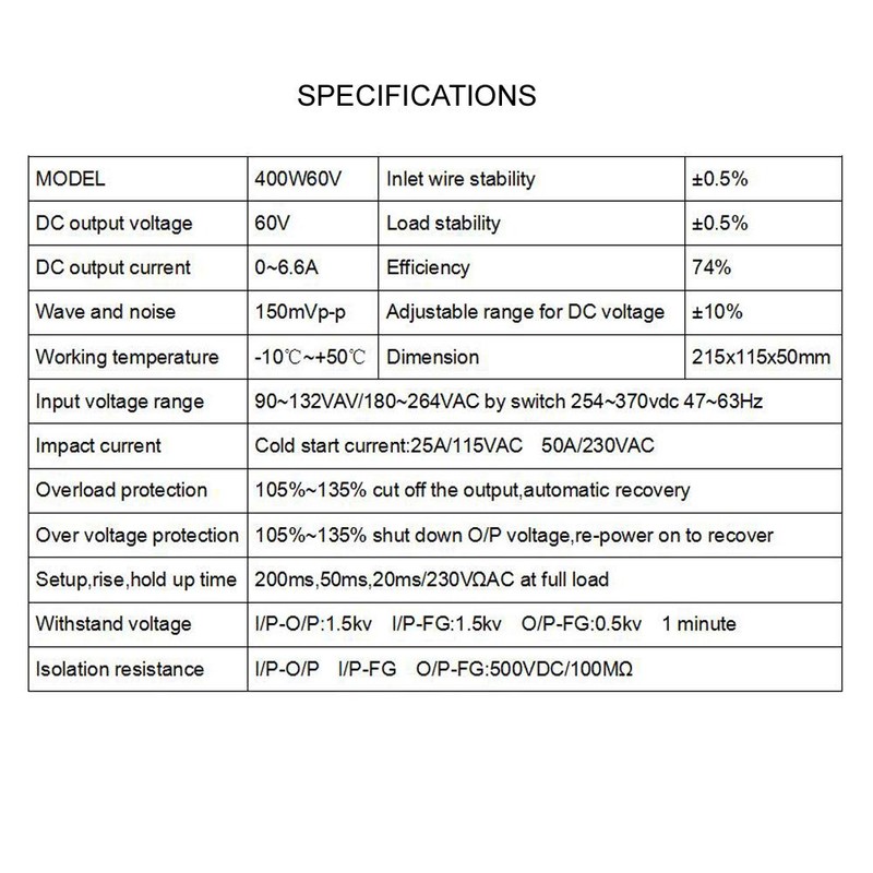 - Package include: 1 x 400W 60V switching power supply