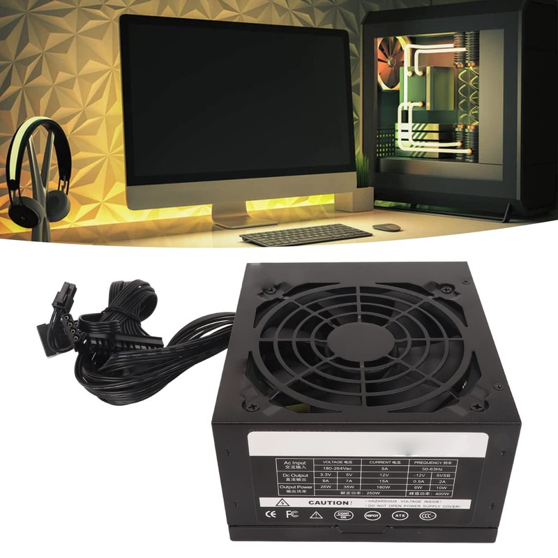 400W Power Supply, 180‑264V Continuous Power with 120mm Ultra Quiet Cooling Fan, Fully Modular Power Supply, Support for Independent Graphics Cards