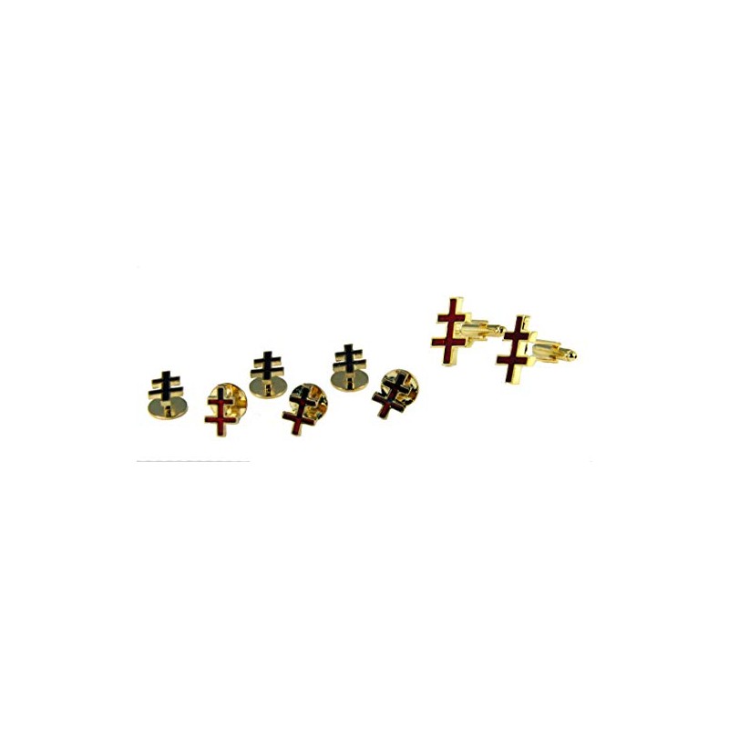 4031935 Scottish Rite 33rd Degree Inspector General Honorary Double Cross Tuxedo Shirt Studs & Cuff Link Set Knights Templar Red Crosses Thirty Third 33 Three Cufflinks