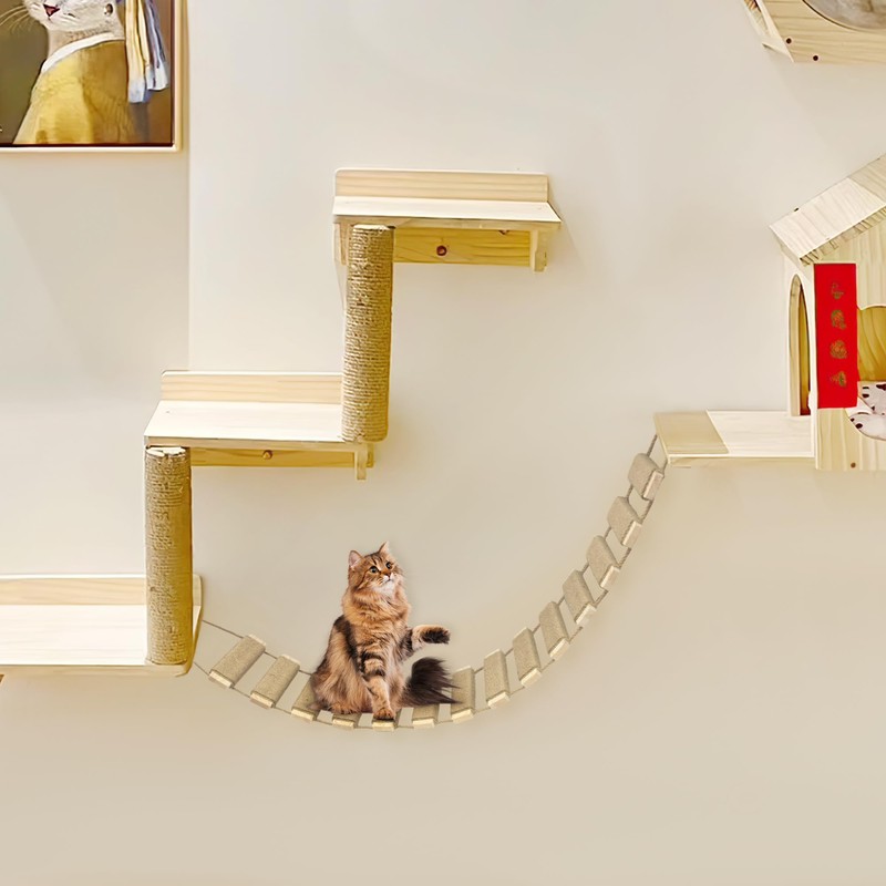 - Versatile Cat Wall Climbing System – Combines a ladder, bridge, and climbing rope to stimulate cats’ natural instincts for climbing, scratching, and play. Fits cats of all sizes and pets like parrots.