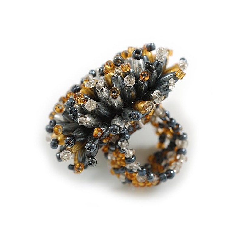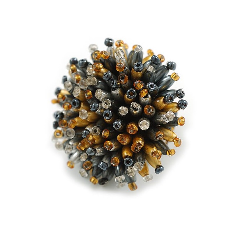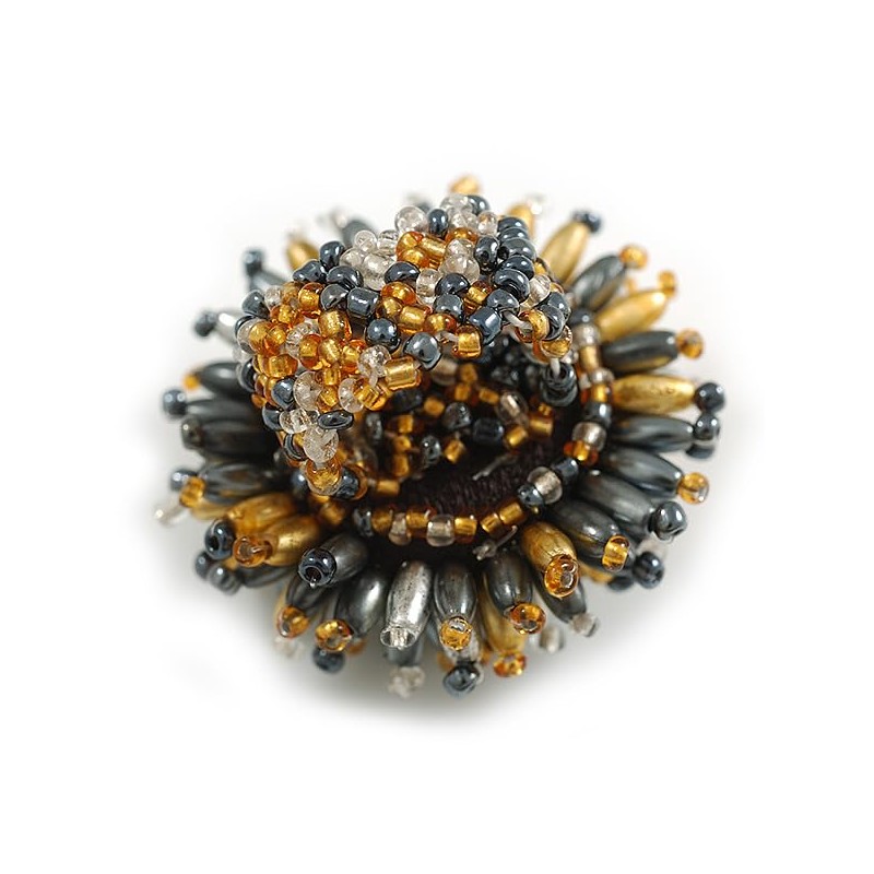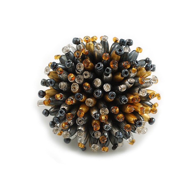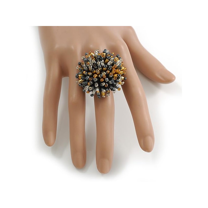 40mm Diameter/Hematite/Gold/Transparent Acrylic/Glass Bead Daisy Flower Flex Ring - Size M