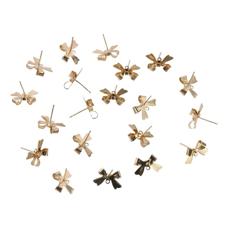 40Pcs Bowknot Stud Earrings Gold Plated Stud Earring Findings Bow Stud Earrings Brass Stud Earring Findings with Loop for Dangle Earring Jewelry Making