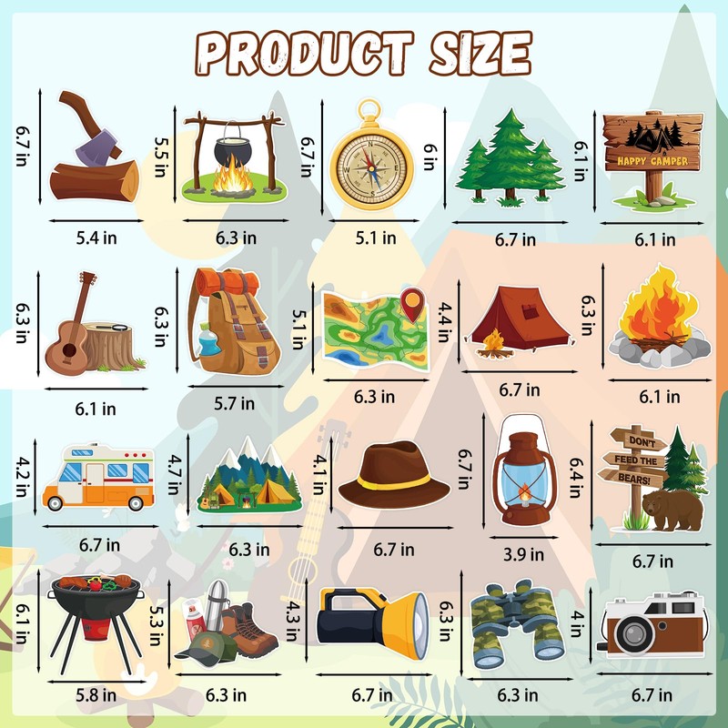- Creative Design: Camping hanging swirls are designed with many camping-related elements, such as bear, backpack, telescope glass, tents, tree, campfire, camera and more, with sparkling swirls, creating a life-like effect that will bring more fun to your camper party.