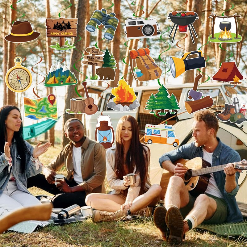 - Perfect Camping Themed Hanging Decor: These camping hanging swirl decor are the finishing touch to your camping party hanging decorations, which can be used for happy camper themed party, camping birthday party, baby shower, wild party, school recreational activities, backyard camp out and so on. Camping theme hanging swirls are nice background props for photo shoots, set up a perfect party and take great photos with your family and friends.