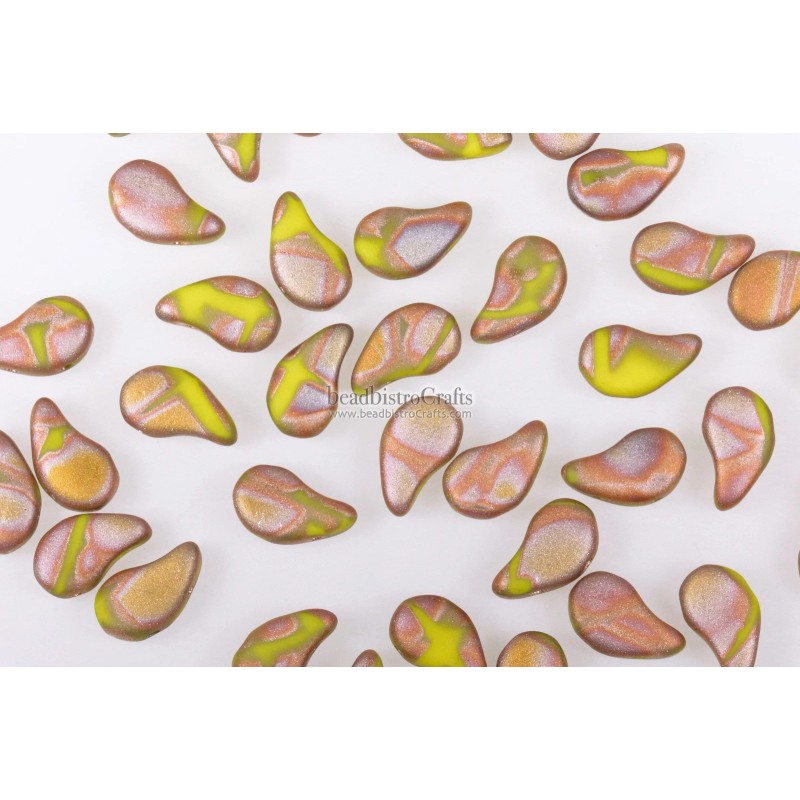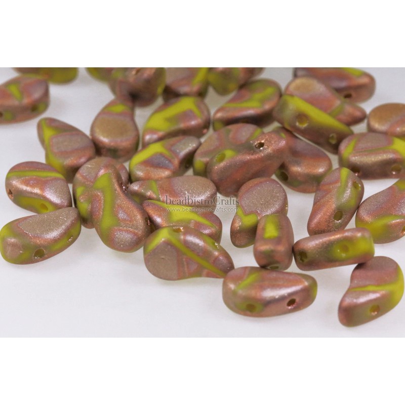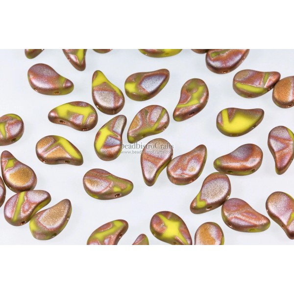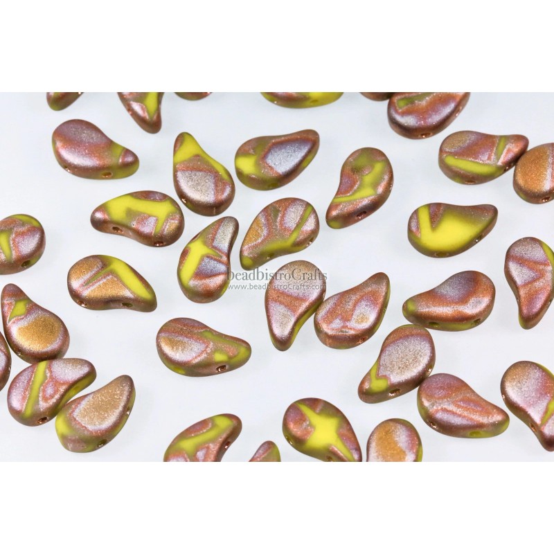 40pcs Czech PAISLEYDUO beads - 2 hole beads - Opaque Limon Full CAPRI Gold