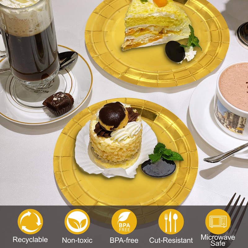 - OUTSTANDING CUSTOMER SERVICE: If you have any questions about our disposable paper dinner plates, feel free to contact us and we will help you solve the problem within 24 hours. You can order our disposable party dinner plates with confidence and enjoy the convenience and speed it brings you.