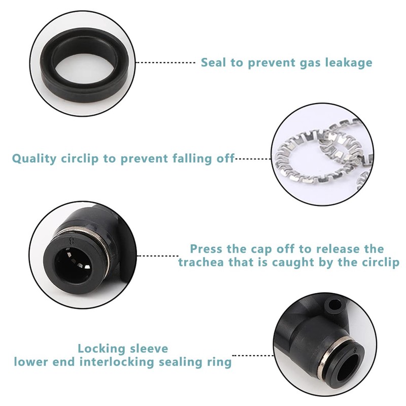 - 【Good sealing performance】High-quality sealing ring is used to prevent gas leakage, the circlip can also tightly clamp the trachea, and the lower end is interlocked with the sealing ring