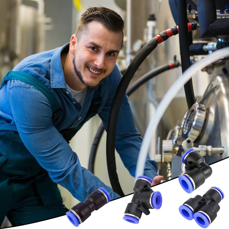 - 【Value Package】You will receive 10 pieces direct pneumatic parts (PU), 10 pieces V two-way parts (PV), 10 pieces T tee parts (PE) and 10 pieces Y tee parts (PY), available in black and blue Two colors, sufficient quantity, different specifications and types can meet the needs of pneumatic piping