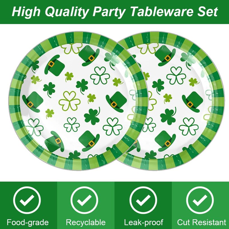 • EASY TO CLEAN: Our St. Patrick's Day plates and napkins are disposable, which means you don't need to worry about cleaning up after the party. Simply throw them away when you're done, and enjoy the hassle-free cleanup.