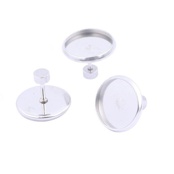 40pcs Stainless Steel Stud Earring Bezel Blanks Fit 12mm Cabochon Base Setting Trays DIY Screw Back Ear Posts Findings