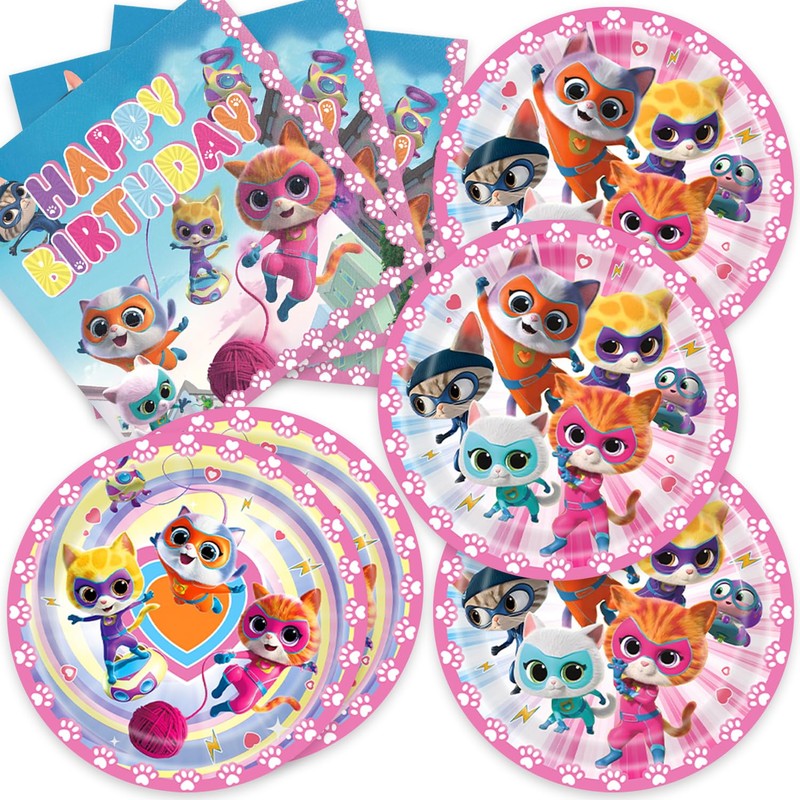 40PCS Super Kitties Party Supplies,Party Tableware Set for 20 Guests,theme Bi...