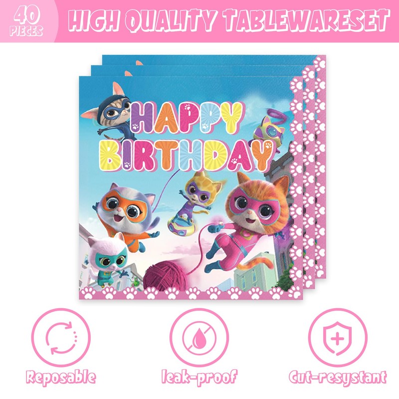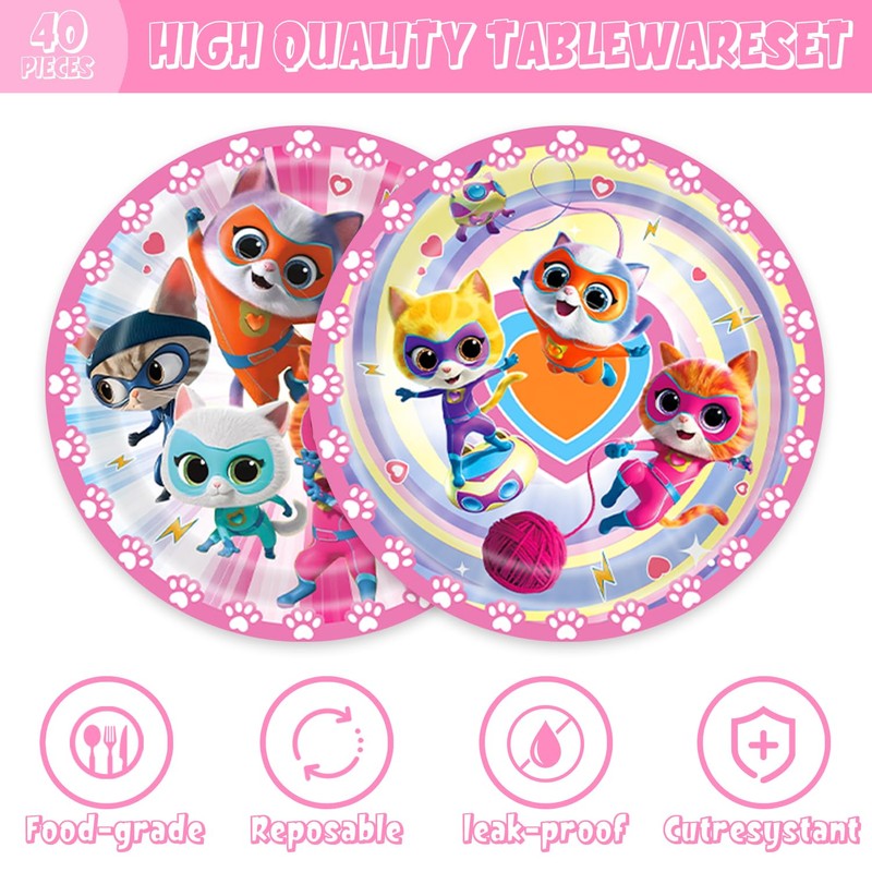 40PCS Super Kitties Party Supplies,Party Tableware Set for 20 Guests,theme Birthday Decorations ,Used for Kittys Birthday Party Supplies