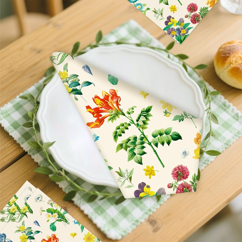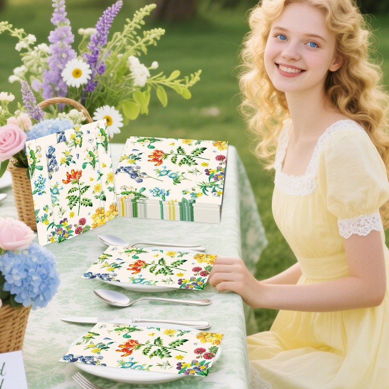 - Hosts can use these floral napkins to elevate tea parties, bridal showers, or outdoor celebrations with their charming botanical motifs