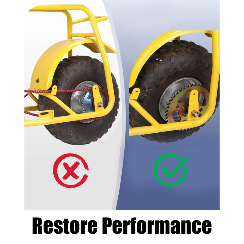 - High Speed Sprocket: Sprocket for mini bike adopts a 40 tooth high-speed gear ratio design, which increases the rear wheel speed and optimizes power transmission efficiency, making your mini motorcycle superior in acceleration response and top speed performance. Whether it's daily commuting or cycling on the track, the sense of speed is smooth and enjoyable
