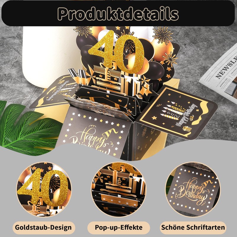 - Birthday card for 40: This pop-up birthday card is specially designed for the 40th birthday and is suitable for celebrating important moments in life, it is beautifully designed and is suitable as a gift for family and friends