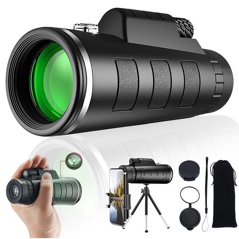 40x60 HD Monocular Telescope for Adults High Powered,with BAK4 Prism,Night Vision & Waterproof Design,Tripod and Smartphone Adapter Included, Suitable for Outdoor Enthusiast - Black