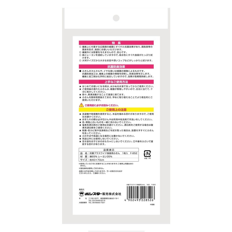 ボンスター 抗菌食器用ワイドふきん 抗菌・防臭でせいけつに 厚手で大判サイズなのでとっても便利 約40×70cm 1枚入 F-852